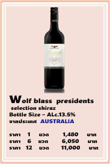 Wolf blass presidents () Alc.13.5% selection shiraz